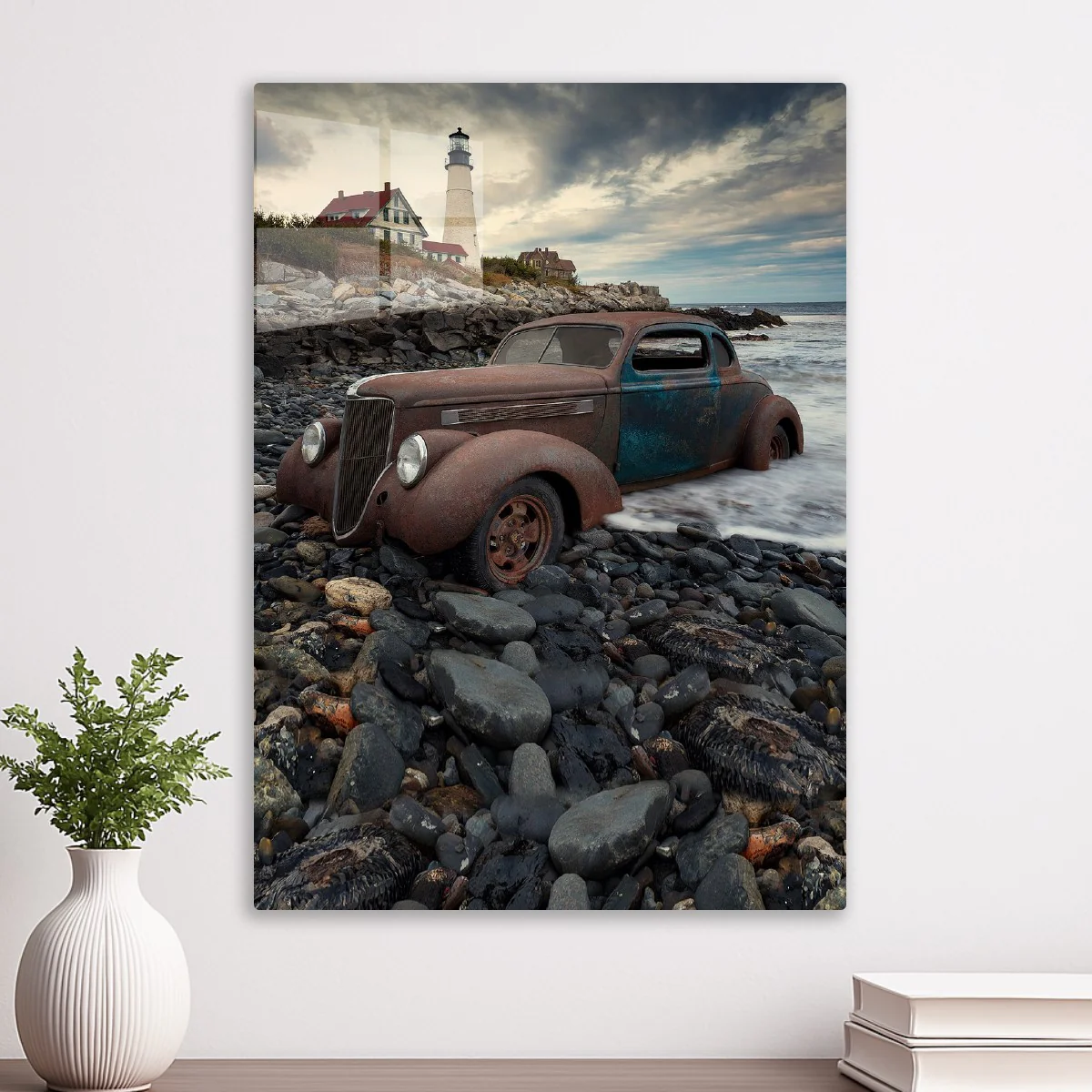 Capture the mystery and beauty of solitude with our "Abandoned on the Coast" metal poster. Perfect for lovers of moody landscapes.
